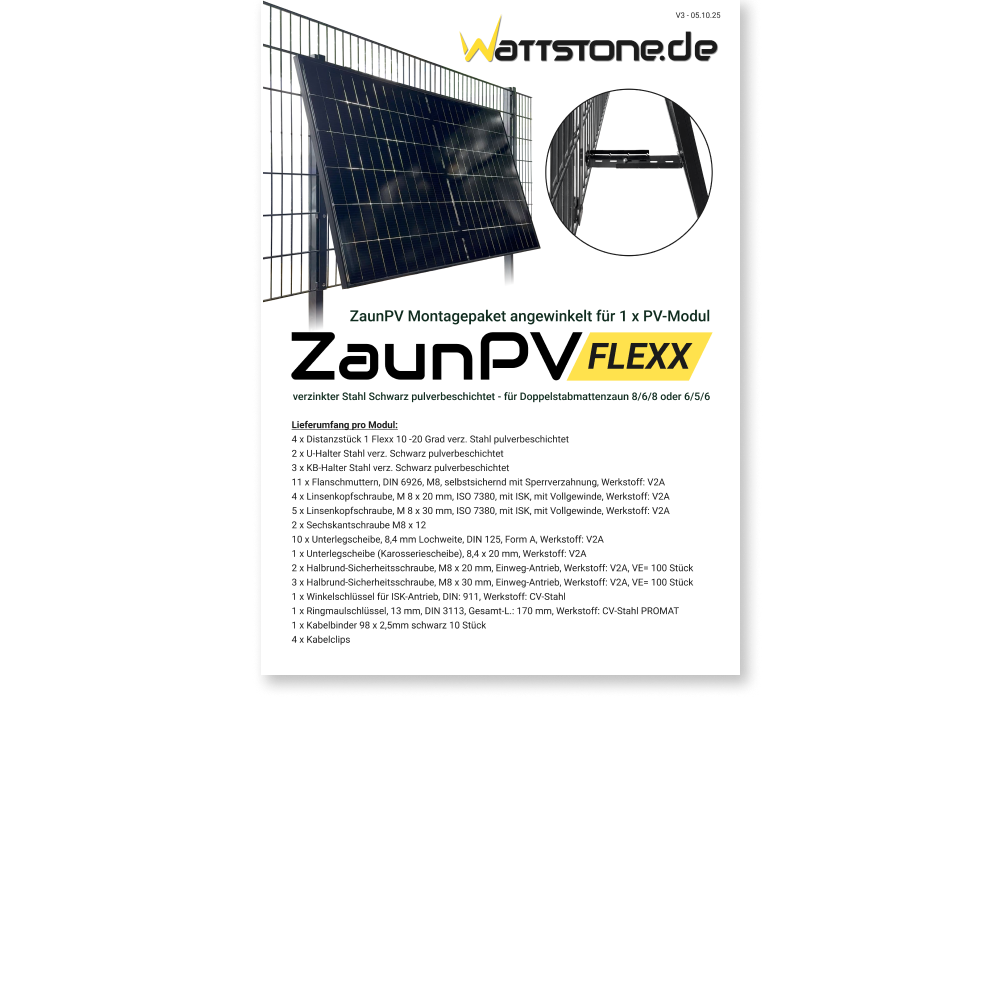 ZaunPV Flexx Montagepaket angewinkelt für 1 PV-Modul